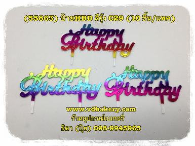 (558621) ป้ายพลาสติกHBD สีทอง C29 (100 ชิ้น/แพค)