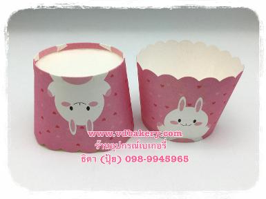 ถ้วยปาเนทโทนขอบหยัก ขนาดเล็ก ลายกระต่าย พื้นชมพูหัวใจ (50ใบ/แถว)