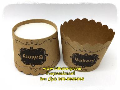 ถ้วยปาเนทโทนขอบหยัก ขนาดเล็ก ลาย BAKERY พื้นคราฟท์ (50ใบ/แถว)