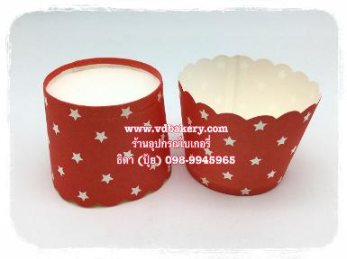 (สินค้าหมด) ถ้วยปาเน็ตโทนขอบหยัก ขนาดเล็ก ลายดาวขาว-พื้นแดง (50ใบ/แถว)