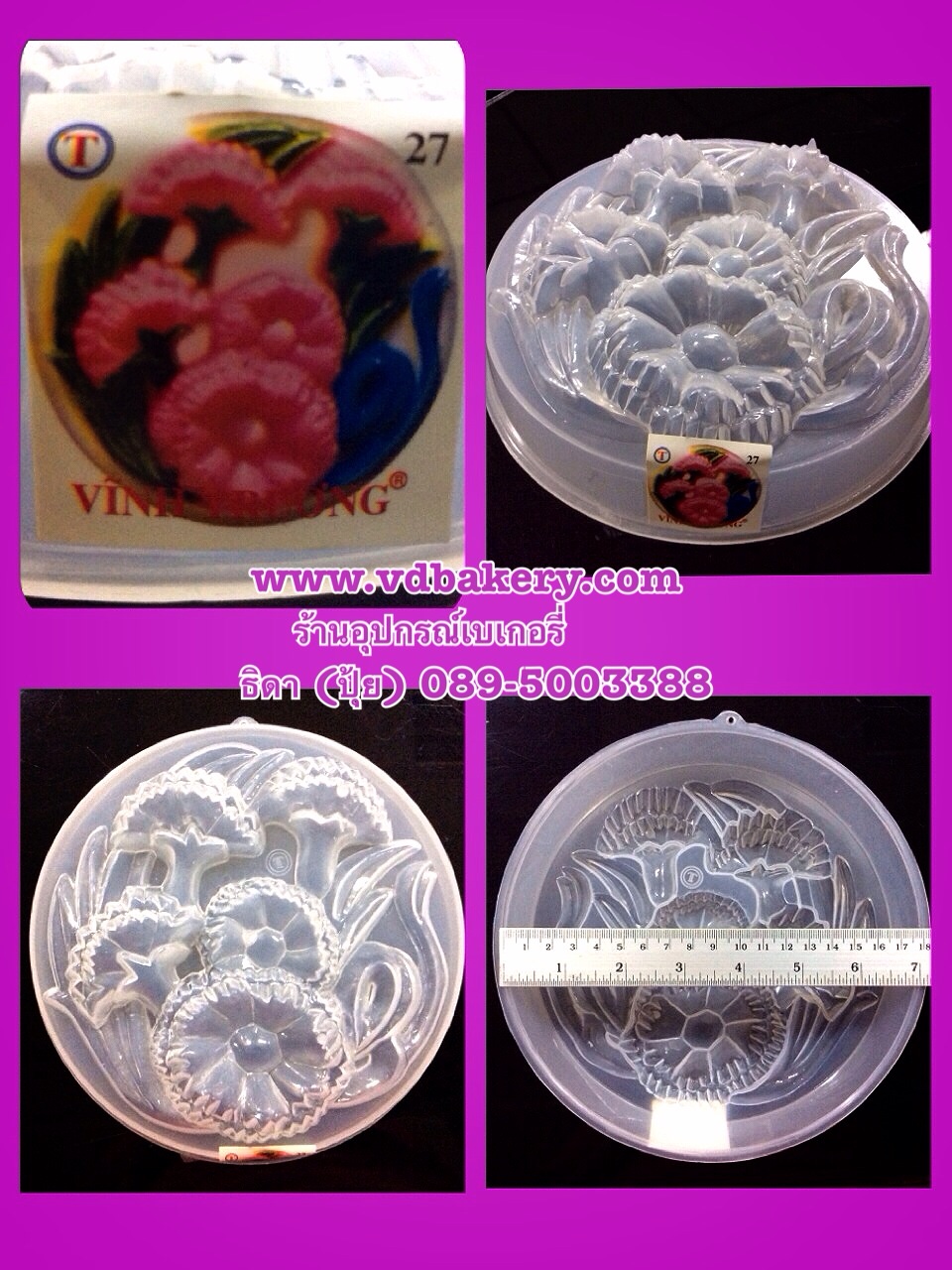 (5100127) พิมพ์วุ้นปอนด์ 20 cm. No.27 (ลายดอกคาร์เนชั่น กลม)