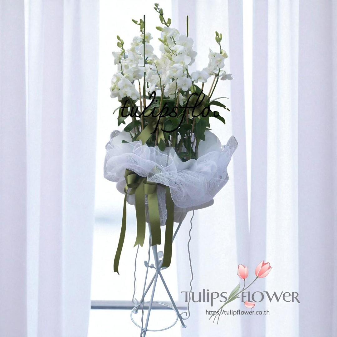 หรีดต้นกล้วยไม้ พร้อมขาแสตน (ดอกไม้อาจมีการเปลี่ยนสีตามสต๊อกของค่ะแตจะแจ้งให้ทราบก่อนค่ะ)